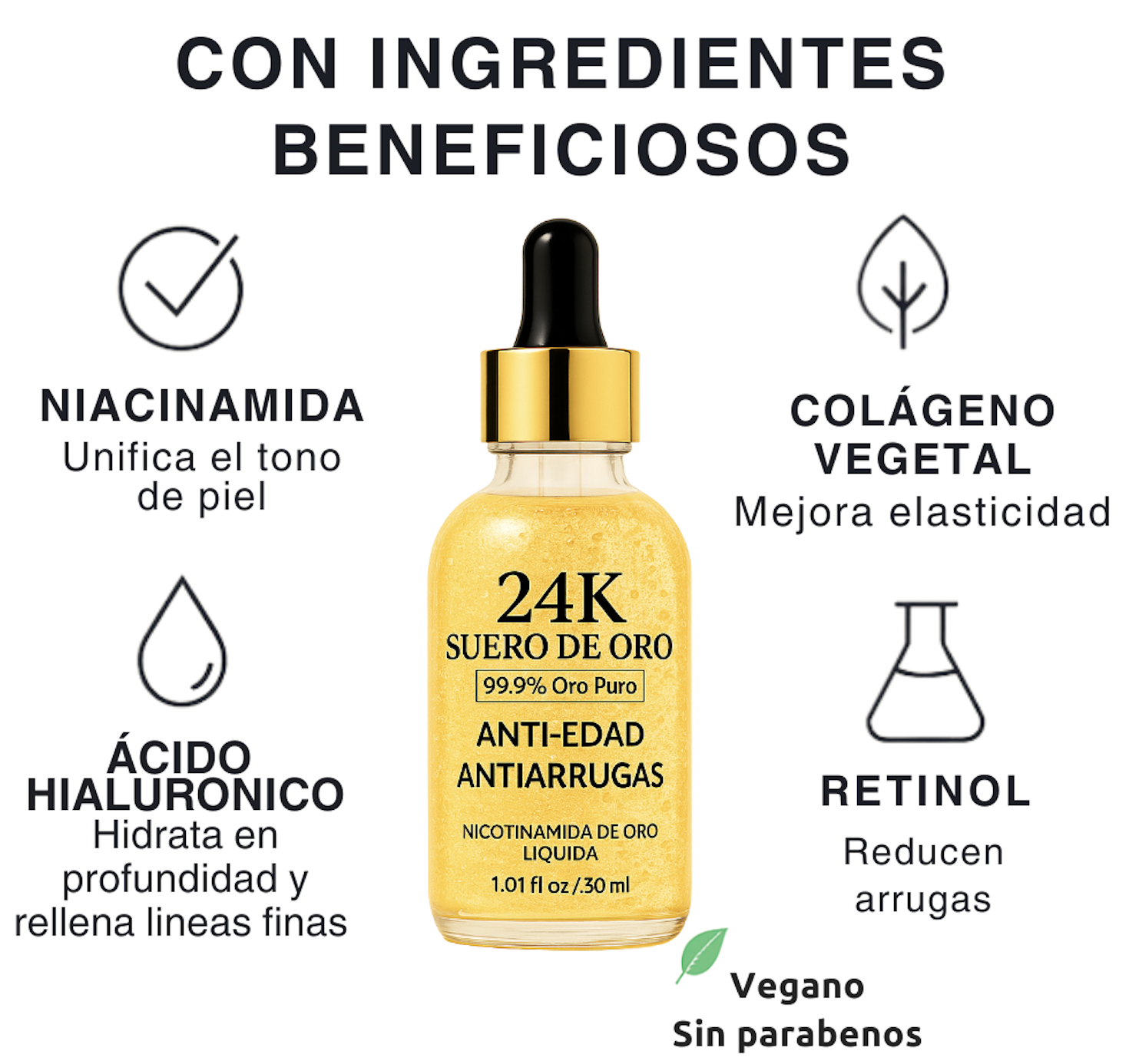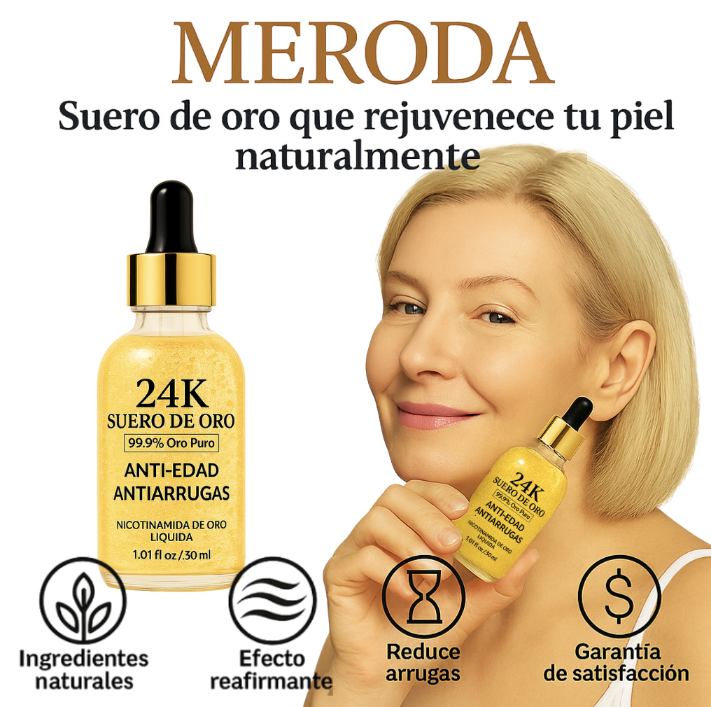 MERODA® Suero de Oro 24K – Antiedad y antiarrugas para una piel visiblemente más firme y luminosa.